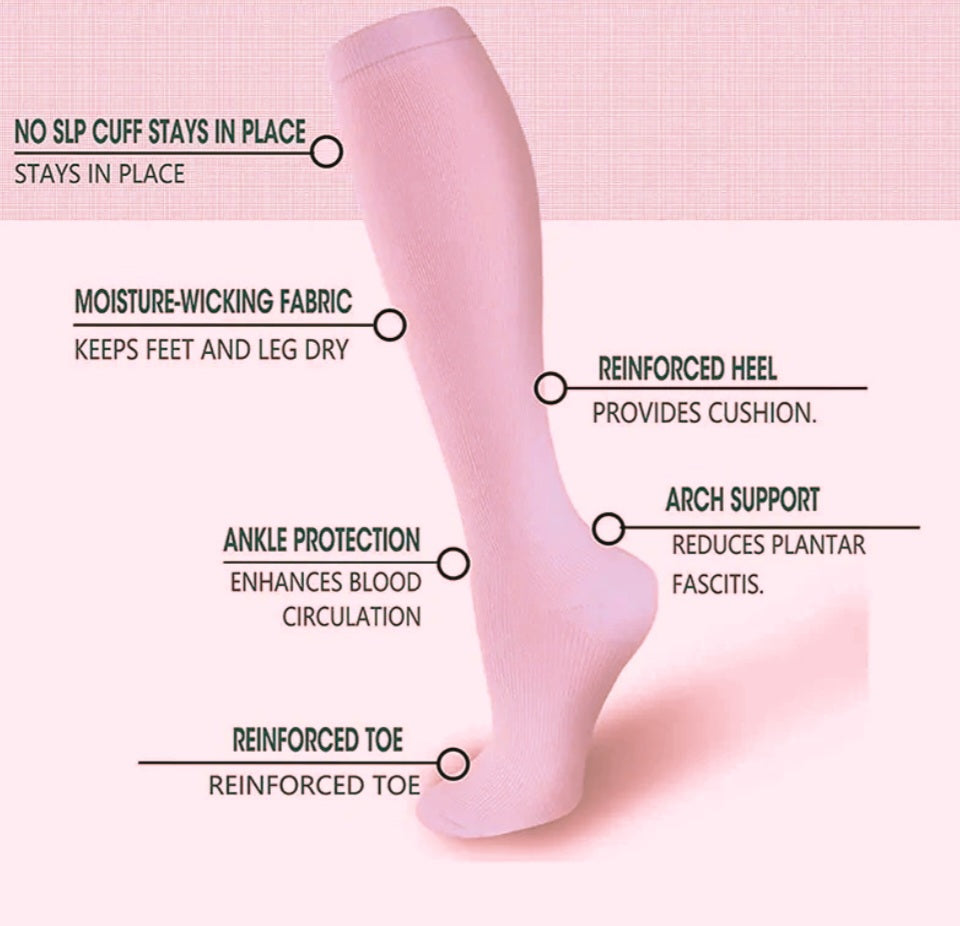 Unsere Kompression Sox verbinden Style & Science: spürbar leichte Beine, eine schlanke Silhouette und maximalen Tragekomfort – ganz ohne Kompromisse. Ob im Alltag, beim Reisen oder nach einem langen Tag: Sie unterstützen deine Durchblutung, beugen müden Beinen vor und sehen dabei einfach richtig gut aus. Ein smarter Mix aus Funktion, Fashion und Wohlgefühl – für Frauen, die wissen, was sie wollen.